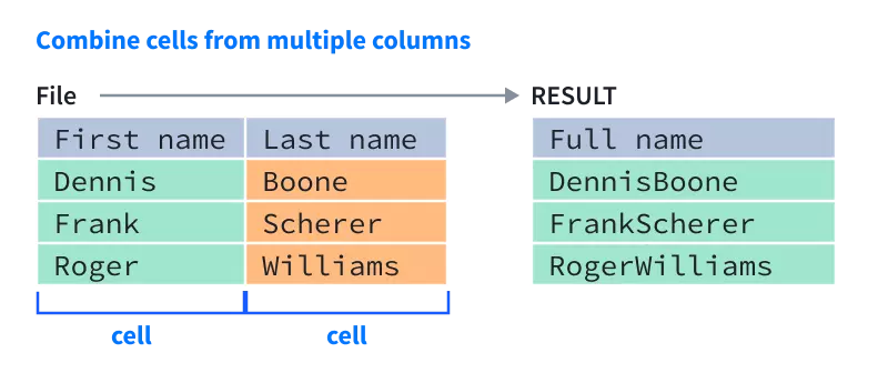 • Once the file has been uploaded, you can select the columns to be combined. In seconds, you'll combine cells into a single cell.